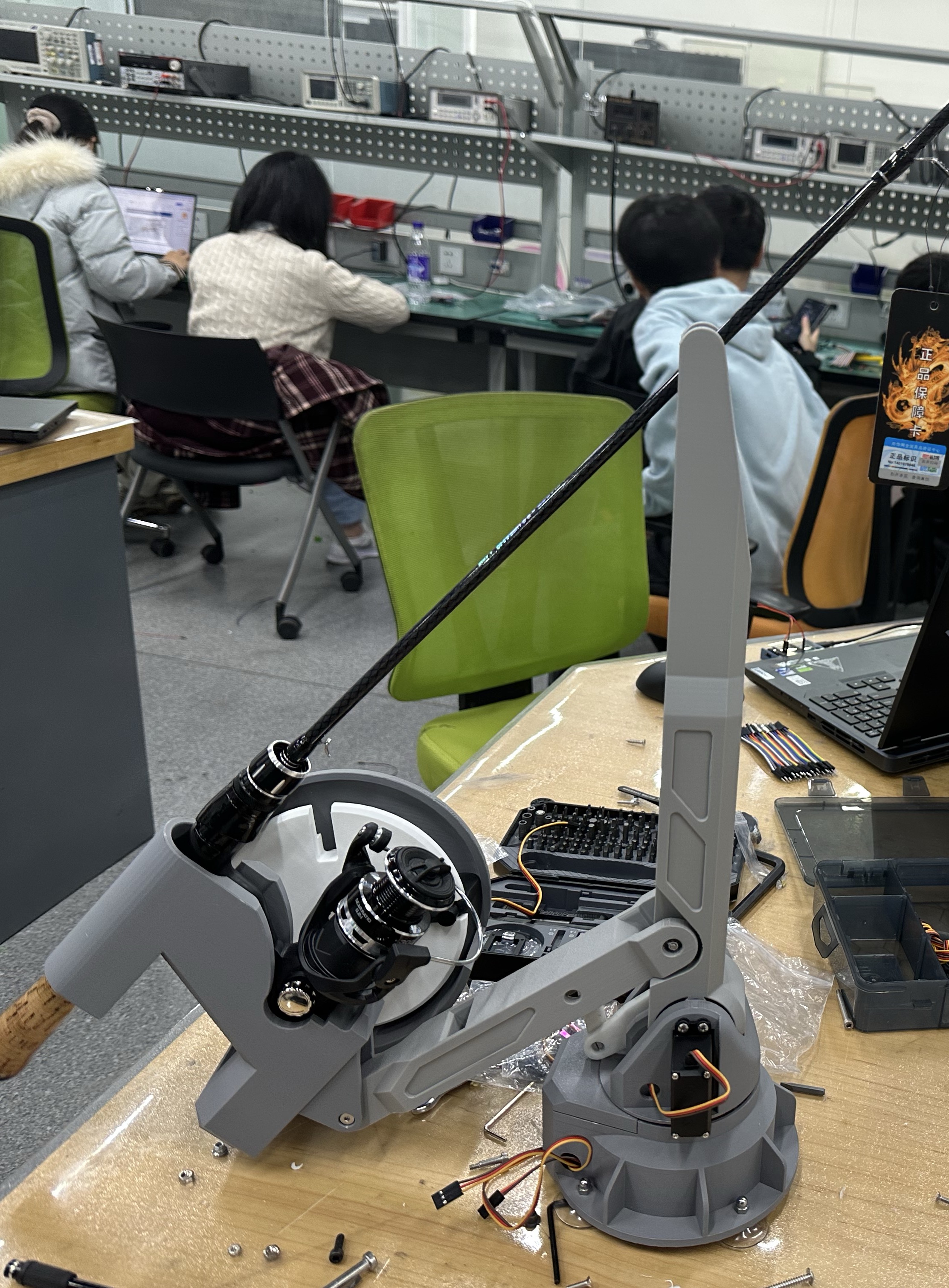 能够模拟传统垂钓中“扬竿刺鱼”与“收线起鱼”两个关键动作。
