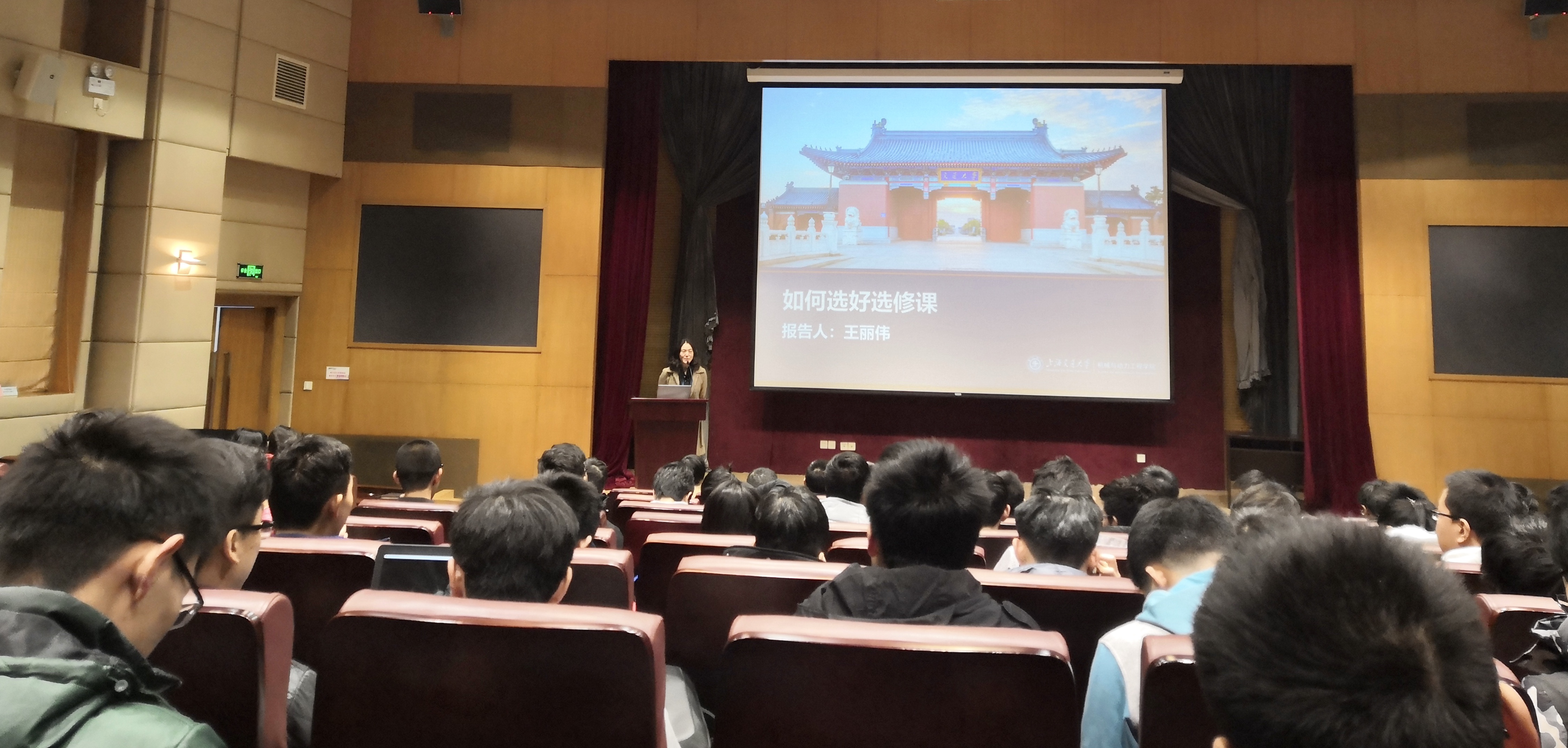 首先,王丽伟向学生们介绍了学院组织构架,专业选修课各模块课程,并分别就机械类、能源类模块课程进行细分,并详细介绍了各细分模块的重要课程,为16级学生近期选课提供了重要的建议。