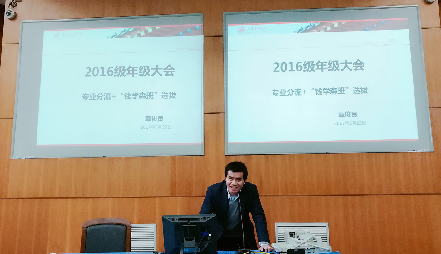 2017年3月22日,德赢vwin体育官网登录2016级本科生专业分流、“钱学森班”选拔介绍会在上院500顺利召开。学院副院长章俊良教授、本科教务办主任吴艳琼老师、年级思政王国锋、陈龙老师、年级教务袁霞老师以及2016级本科生参加了本次会议。