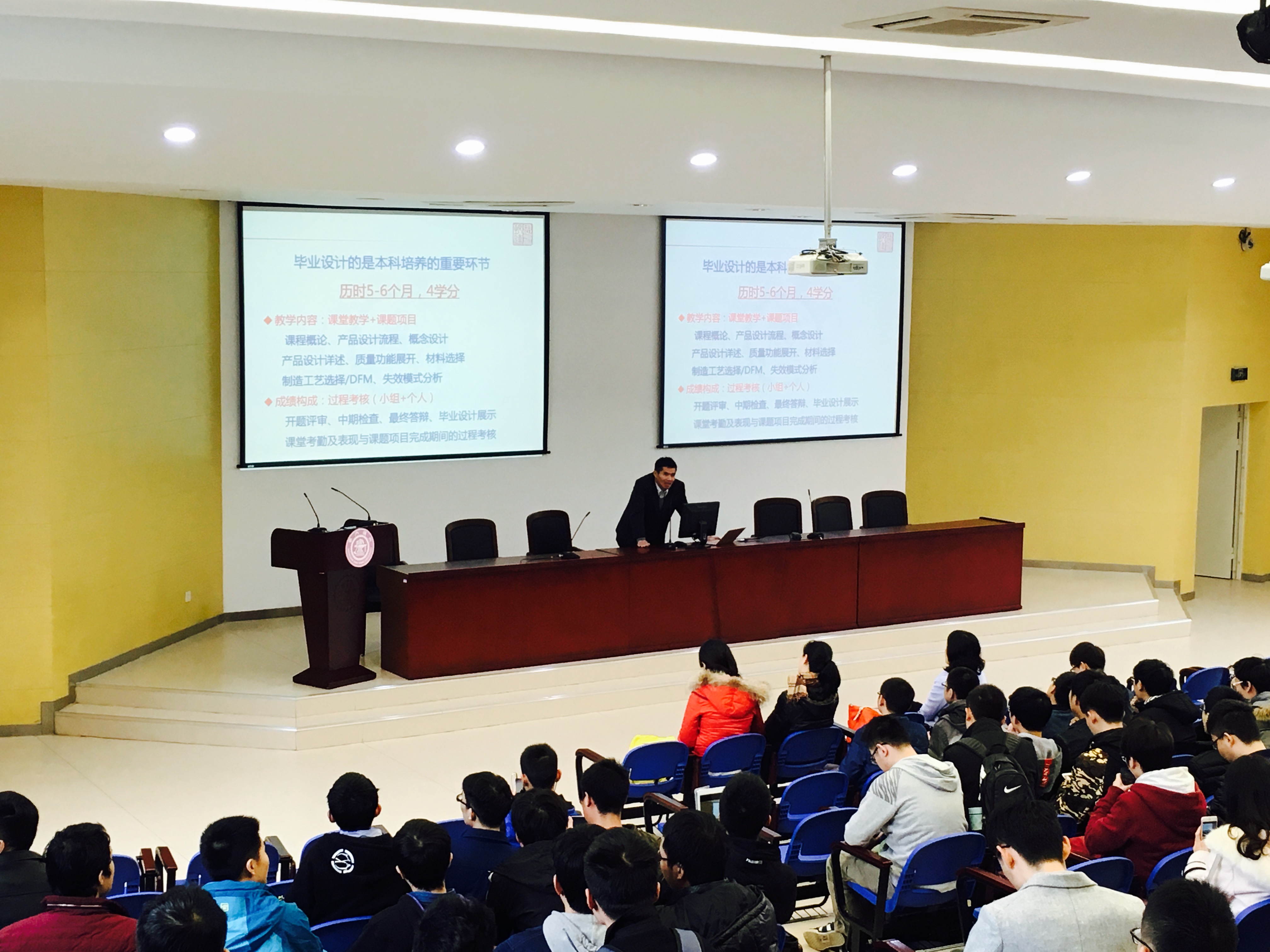 12月20日中午,德赢vwin体育官网登录2013级本科生毕业设计启动会在东上院500召开。大会向学生介绍了今年毕业设计的重要改革情况,强调了毕业设计的重要意义,并就文献调研做了专题讲座。机械动力学院副院长章俊良、毕业设计负责人陈璐、本科教务办主任吴艳琼、图书馆机械动力学科馆员马丽华以及学院2013级所有本科生出席此次会议。