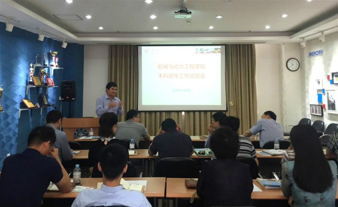 为积极推进本科招生宣传工作,6月8日上午在机械楼F310召开2016年本科招生宣传动员会暨招生工作会议。德赢vwin体育官网登录院长奚立峰、党委书记杜朝辉、副院长章俊良、党委副书记顾希垚及学院全体参加招生宣传工作的教师参加了此次会议。大会由章俊良副院长主持。