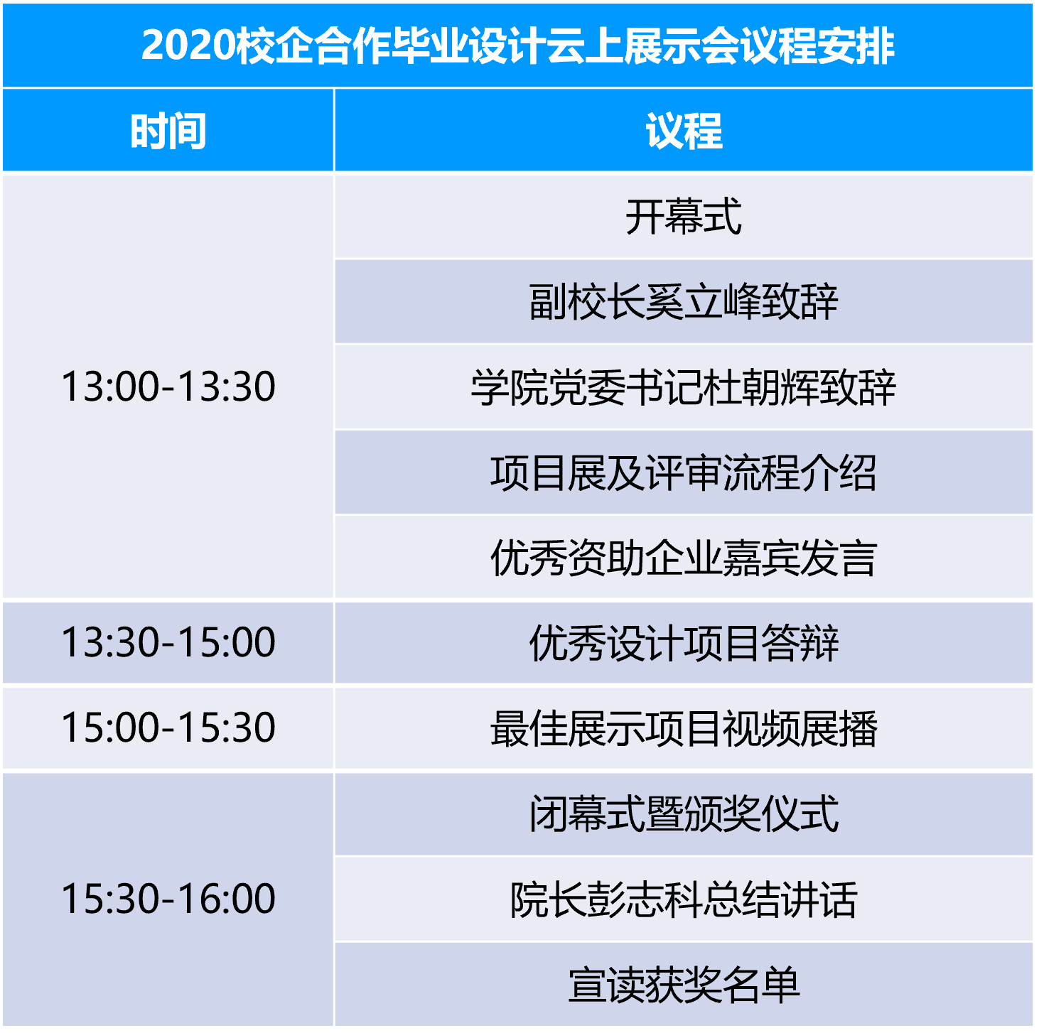 2020校企合作毕业设计云上展示会将呈现来自于74家资助企业的132个项目,由112名教师指导400名本科生共同参与。此次展示会将于2020年6月19日(周五)13:00线上举行,展示会使用Zoom平台,请提前下载Zoom软件https://www.zoom.com.cn/download 。