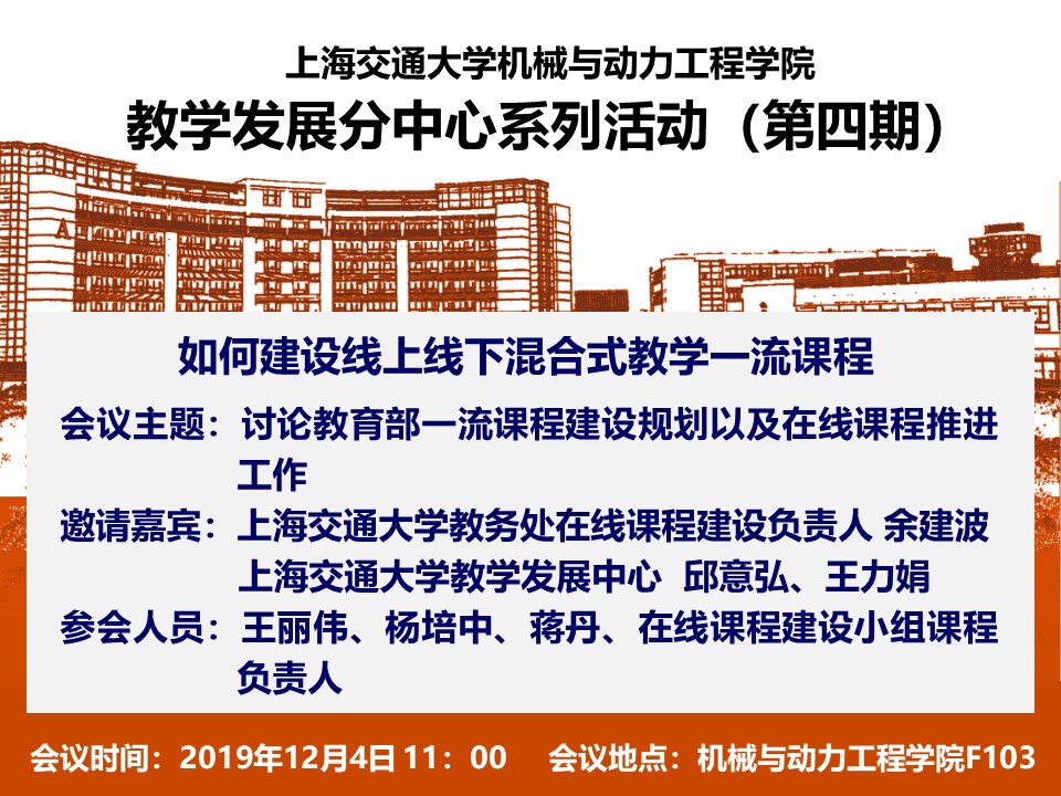 为进一步讨论教育部一流课程建设规划以及在线课程推进工作,特邀请德赢vwin体育官网登录慕课推进办公室主任余建波、德赢vwin体育官网登录教学发展中心邱意弘及王力娟,就“如何建设线上线下混合式教学一流课程”为主题展开德赢vwin体育官网登录德赢vwin体育官网登录教学发展分中心系列活动(第四期)!