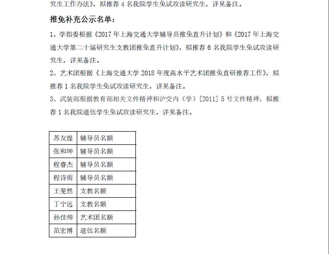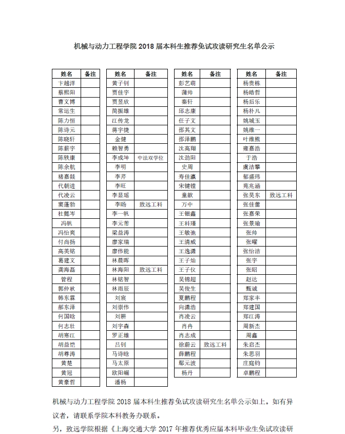 【推免】德赢vwin体育官网登录2018届本科生推荐免试攻读研究生名单公示