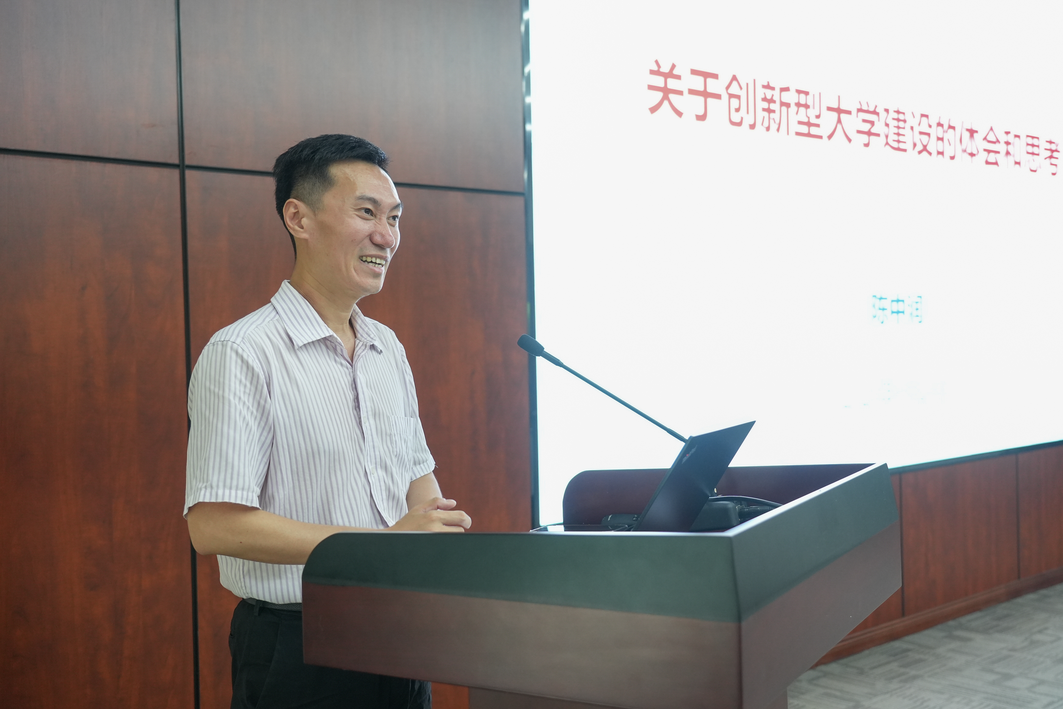 改革发展与研究室主任陈中润以“关于创新型大学建设的体会和思考”为题作专题讲座,通过案例和热点问题分析,从阶段、功能、形态三个方面阐述了对创新型大学建设的认识,从个体的创新活力、组织的创新能力和环境的创新氛围三个方面提出关于创新型大学的理解。他列举了学校“学在交大”“院为实体”“多元评价”等综合改革的重点举措,分析了关于建设创新型大学的做法和思考。