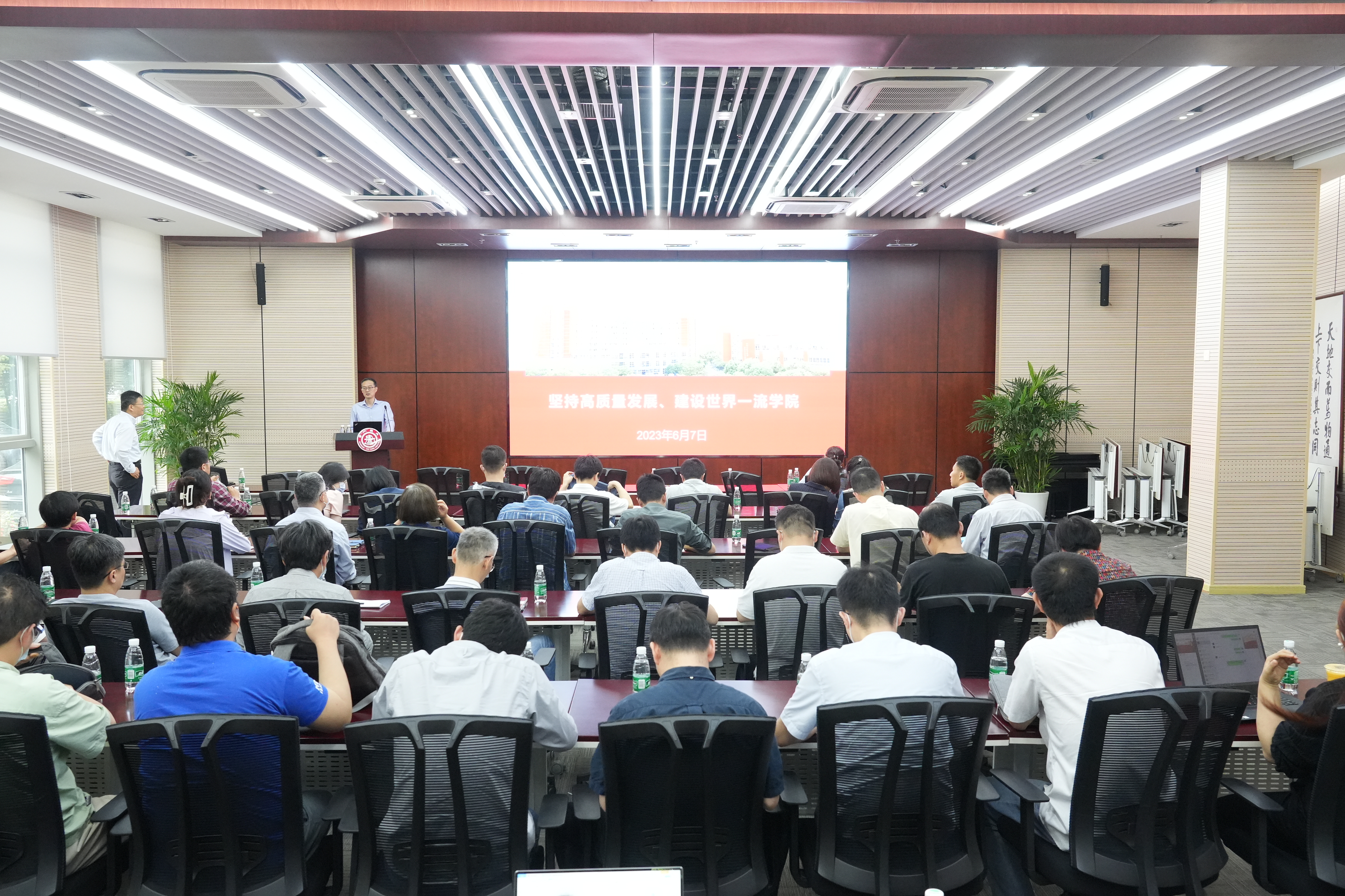 为深入学习贯彻习近平新时代中国特色社会主义思想主题教育,6月7日,德赢vwin体育官网登录院长、党委副书记杜朝辉以“坚持高质量发展,建设世界一流学院”为题开展专题党课,学院教工党支部书记、支委等50余人参加学习。党课由学院党委书记林立涛主持。