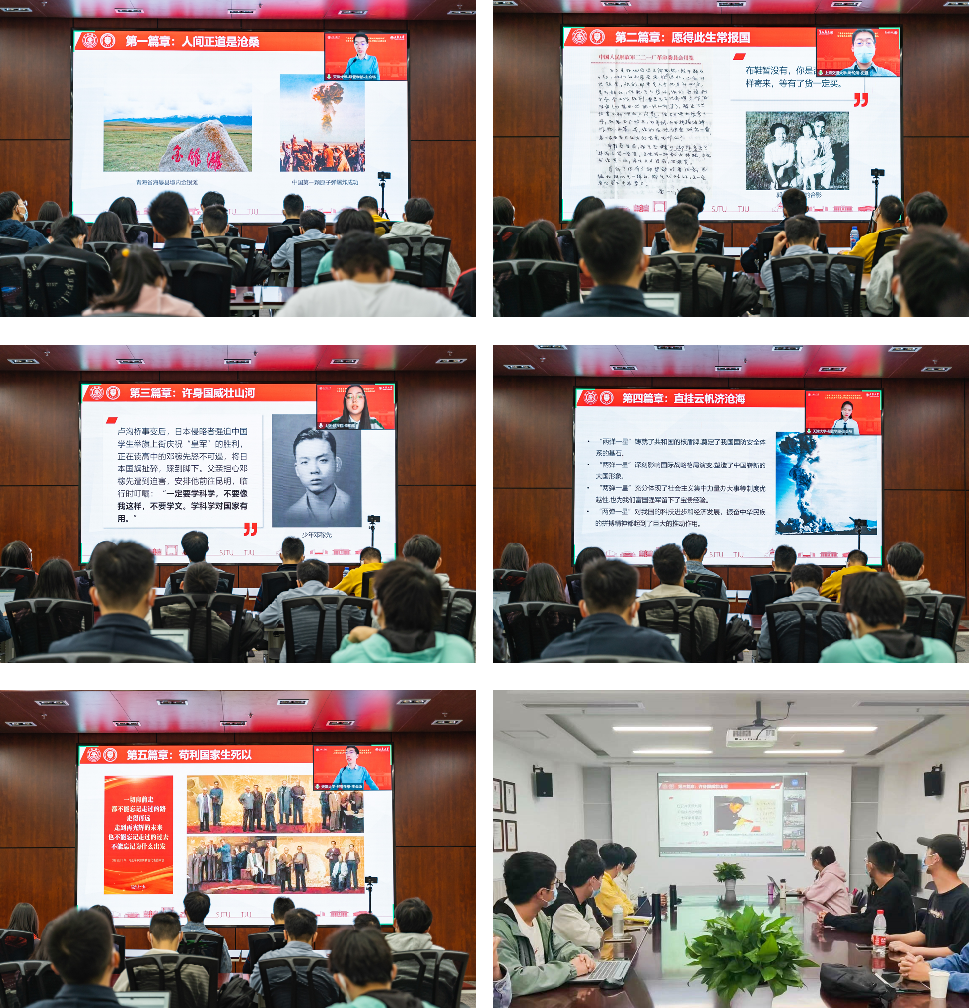 10月30日,为进一步传承“两弹一星”红色基因,学习贯彻党的二十大精神,德赢vwin体育官网登录和天津大学多个研究生党支部通过线上线下相结合的方式,联合举办“传承百年红色基因,谱写新时代绚丽华章”共建活动,开展“弘扬两弹一星精神,传承青春实干本色”聚焦二十大系列之微党课交流学习,同悟新思想、共扬新精神。本次活动由德赢vwin体育官网登录德赢vwin体育官网登录叶轮机械研究所硕士生党支部、博士生党支部,核科学与工程学院研究生第二党支部,天津大学管理与经济学部、化工学院党支部5个支部联合举办,天津大学管理与经济学部党委副书记李庚、教工党支部书记任怡璇、思政教师张春馨,德赢vwin体育官网登录德赢vwin体育官网登录党委副书记张执南、核科学与工程学院教工党支部书记熊进标、叶轮机械研究所班主任葛冰等共270余名师生党员参加了活动。