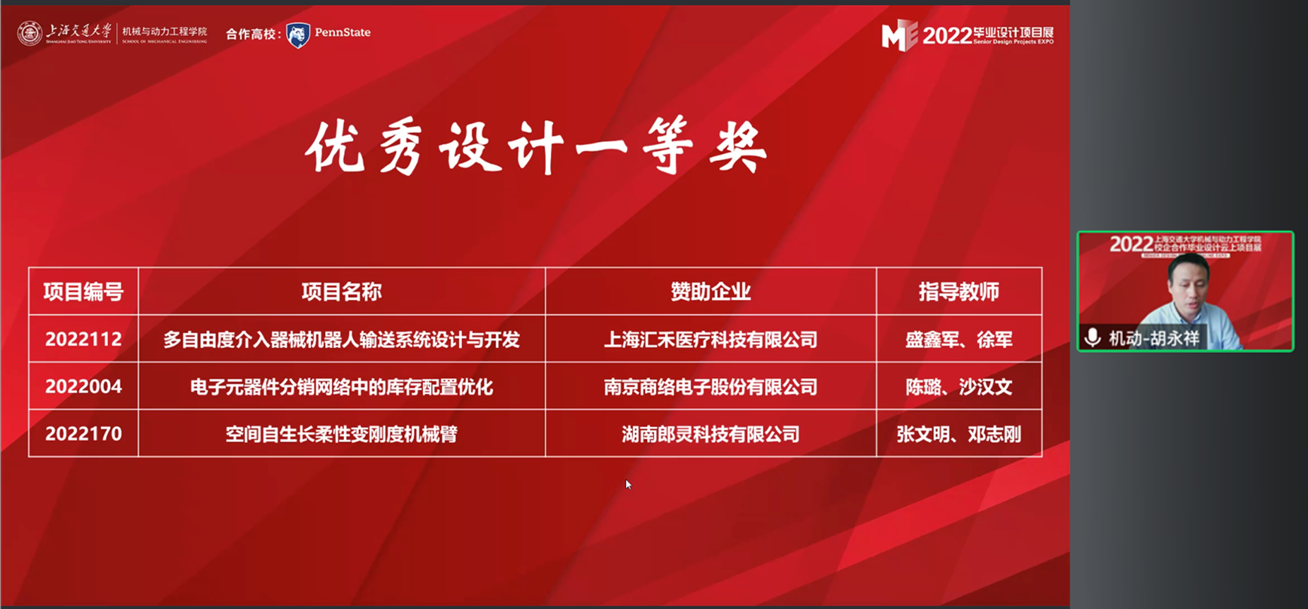 6月5日,德赢vwin体育官网登录举办2022届校企合作毕业设计云上项目展。德赢vwin体育官网登录副校长奚立峰,德赢vwin体育官网登录院长杜朝辉、党委书记林立涛,毕业设计项目指导教师,企业嘉宾,以及全体四年级本科生参加了活动。本届校企合作毕业设计共147个项目,由413名学生、268名交大及企业指导教师历时6个月共同完成,项目获得了95家国内外企业的资助。