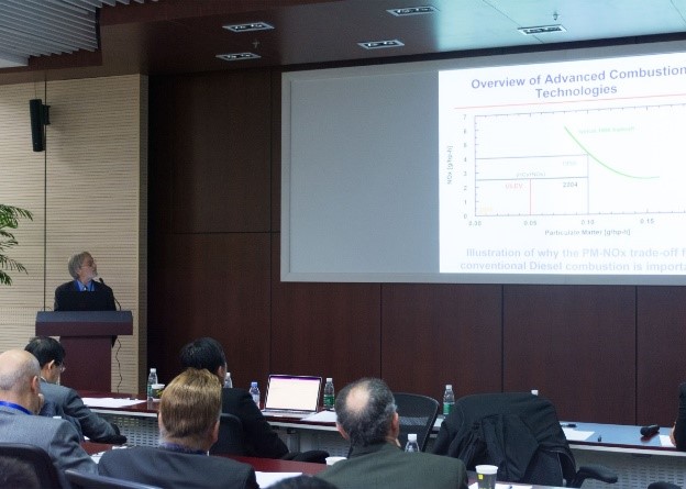 签约仪式结束后,与会专家学者参加了由德赢vwin体育官网登录德赢vwin体育官网登录和中国内燃机学会后处理技术分会共同举办的“先进燃烧技术与颗粒物(PM/PN)控制国际研讨会”,探讨机动车先进燃烧技术和机动车国六排放法规实施相关的先进后处理技术。黄震、Ronald Matthews、Rasto Brezny、Imad Khalek、环保部机动车排污监控中心王燕军、德克萨斯大学奥斯汀分校Matthew Hall、上海市环境科学研究院黄成、厦门环境保护机动车污染控制技术中心苏盛8位专家学者围绕新燃料和先进燃烧技术、美国和中国柴油机改造技术、PM/PN测试技术和传感器技术、柴油机加装DPF治理等方面的技术和方案等做特邀报告。
