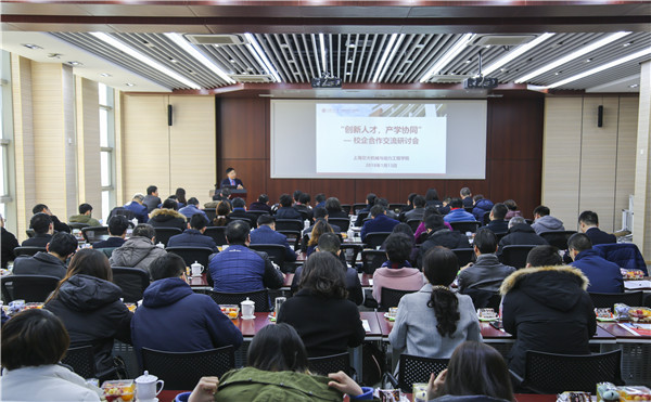 1月13日,德赢vwin体育官网登录召开“创新人才,产学协同”首届校企交流合作研讨会。上海交大副校长奚立峰,学院党委书记兼院长杜朝辉、副院长熊振华、王丽伟、盛鑫军,副书记孟雁、顾希垚及相关教师,丰田纺织(中国)有限公司、上海电气电站集团、中科新松有限公司等近50家企业的近70位代表参加了交流研讨。研讨会由学院副院长章俊良主持。