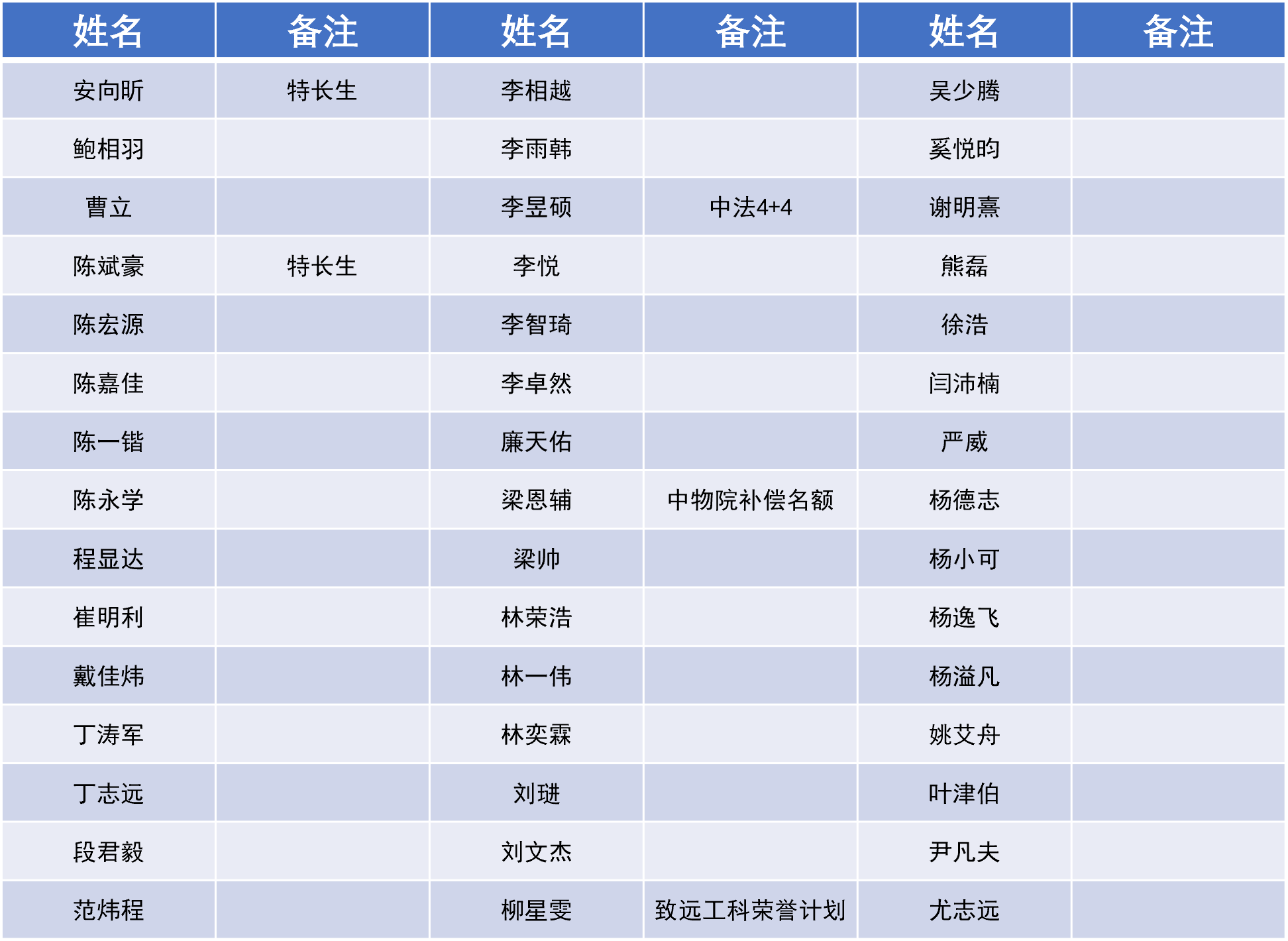 德赢vwin体育官网登录2020届本科生推荐免试攻读研究生名单