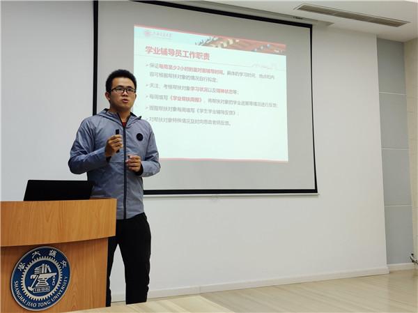 周研首先肯定并感谢了各位学业辅导员在过去一学期的辛勤付出,并且提出了对于学业辅导员工作的期待:希望他们能够切实改善被帮扶对象的学习状态,帮助他们顺利度过大学的学习生活。