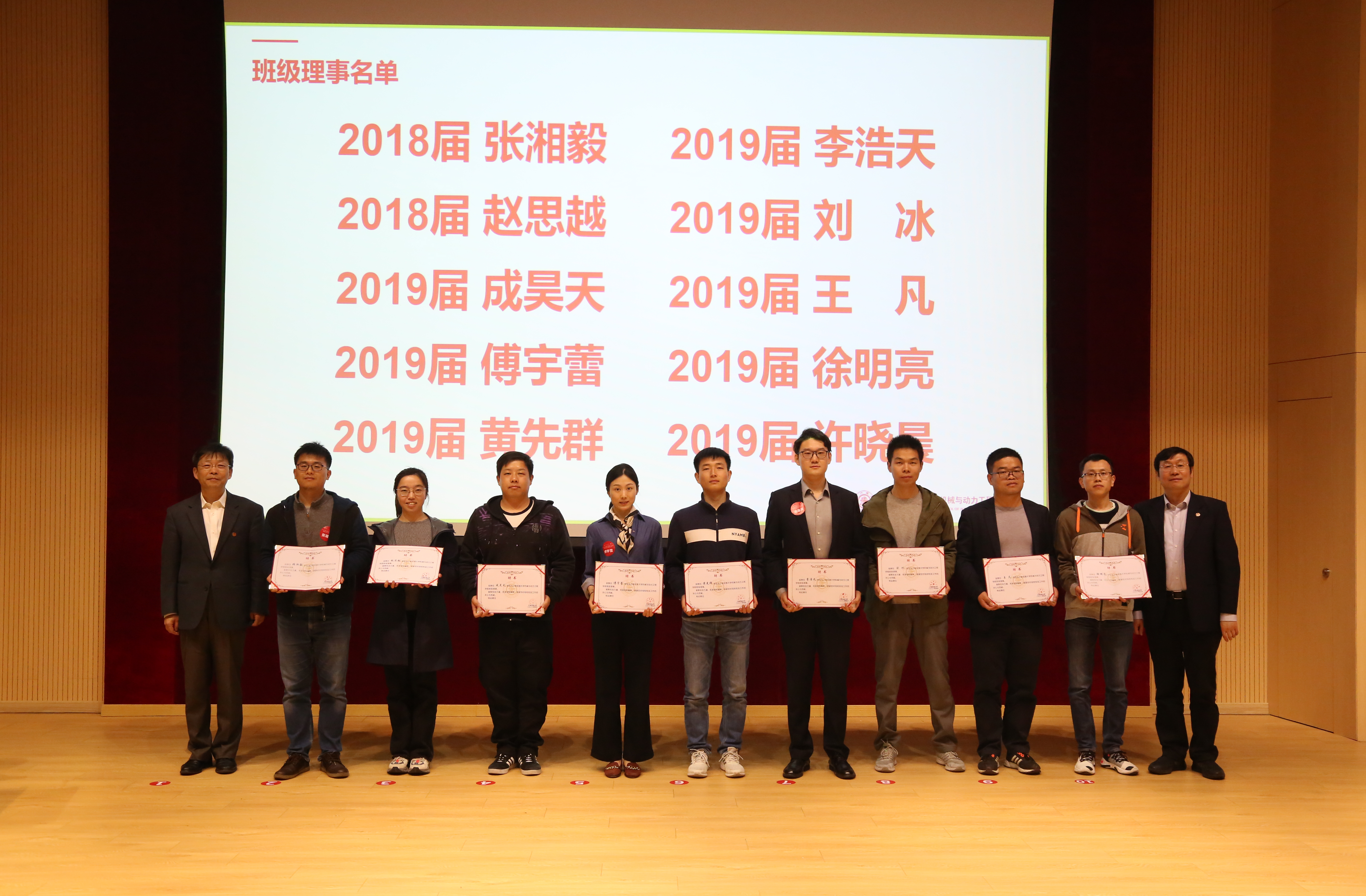 会上宣读了新聘班级理事名单并颁发了证书。目前,学院基本建成了三维校友组织网络,在已有的本科班级理事和硕博班级理事的基础上,探索建立了以导师为硕博校友联系人的联络网格。