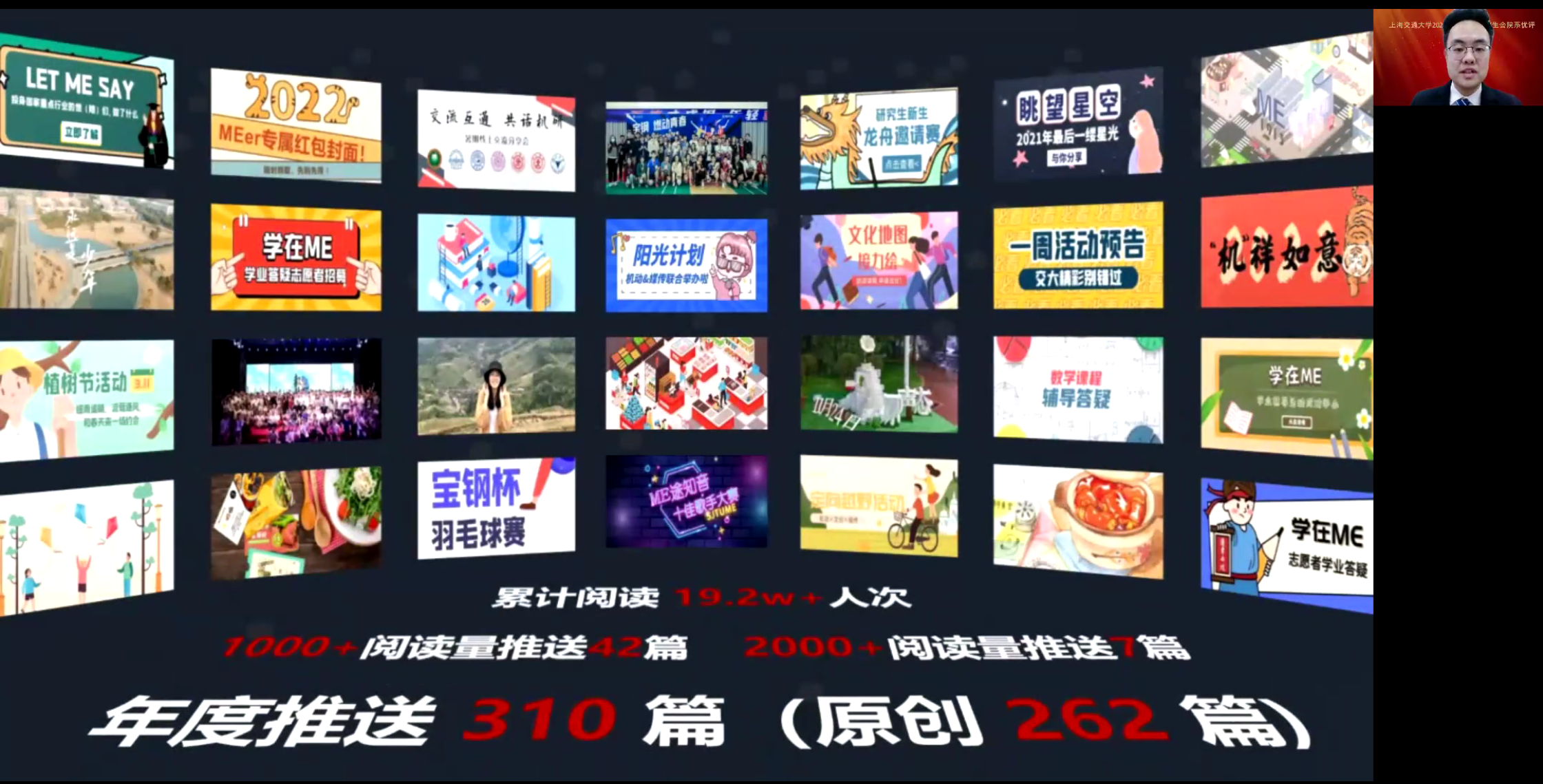 德赢vwin体育官网登录研究生会执行主席张梦源以“机缘百年担重任,能动青春力创先”为主题,从研会服务学生、配合学院开展工作、参与学校重大活动、利用新媒体宣传运营情况、疫情期间充分发挥学生组织价值引领作用五个方面介绍了研究生会一年来的工作情况,并通过“青春有ME”MV展示了研究生会陪伴大家走过的四季。