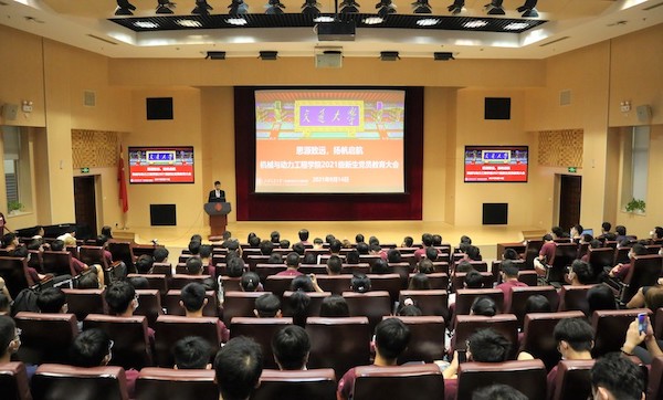 9月14日,德赢vwin体育官网登录“思源致远 扬帆启航”2021级研究生新生党员教育大会在高田会堂主会场、振华会议室分会场同步举行。德赢vwin体育官网登录党委书记兼院长杜朝辉,党委副书记张文明,2007届本科校友、2014届博士校友、工业工程与管理系副系主任夏唐斌,思政教师、辅导员,学生党建联合会成员以及2021级新生党员出席会议。大会由学院学生党建联合会主席、2021级博士生刘宇森主持。