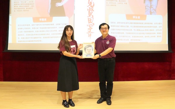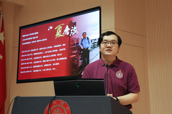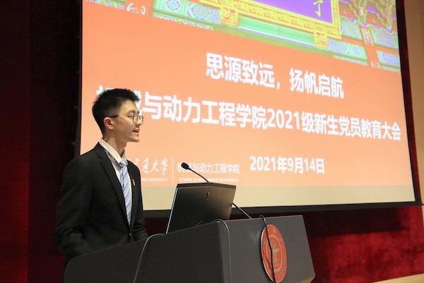 夏唐斌以“传承科研精神、争做优秀党员”为主题,分享了自己在交大求学、治学的经历。他认为,成为一名优秀的共产党员,应以“责任、信念、奋斗”为目标和追求,牢记党的宗旨,强化服务意识,承担党员责任,带动身边的同学共同进步。而成为一名合格的科研工作者,则需要专心科研,“把论文写在祖国大地上”,他结合自己的科研工作经历,为同学们解读如何进行论文选题,进行文献阅读,以及如何思考创新点、研究点,学习汲取新知识,让学术研究成果产生工程运用。他希望党员同学不忘初心,发挥党员的引领作用,积极参加社会实践、学术会议、课题组内的集体活动等,在同学中发挥模范带头作用,他祝愿新生党员在交大绘就属于自己的青春画卷,未来为制造强国贡献自己的力量。分享结束后,新生党员代表送上了精心准备的纪念礼物。