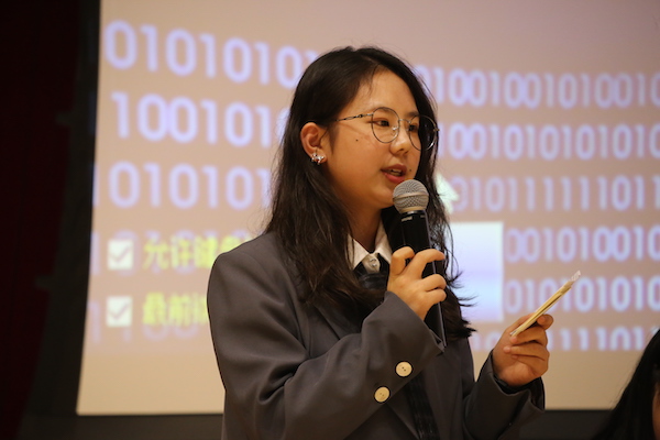 随后,表演赛正式开始。来自学院辩论队的正反双方6名辩手围绕“若人有死亡轮回,且不需要消除记忆,这是一件可喜/可悲的事情”的辩题展开激烈辩论。正方从携带记忆的轮回可以让人体验生活的更多可能性这一论点出发,引用《三体》等著作中的内容加以论证;反方则从轮回会导致社会思维固化、犯罪无法约束等角度进行反驳。双方旁征博引、唇枪舌剑,表现了敏锐快速的思维和逻辑严谨的思辨,向观众们充分展示了辩论的魅力。表演赛在热烈的掌声中落下帷幕。