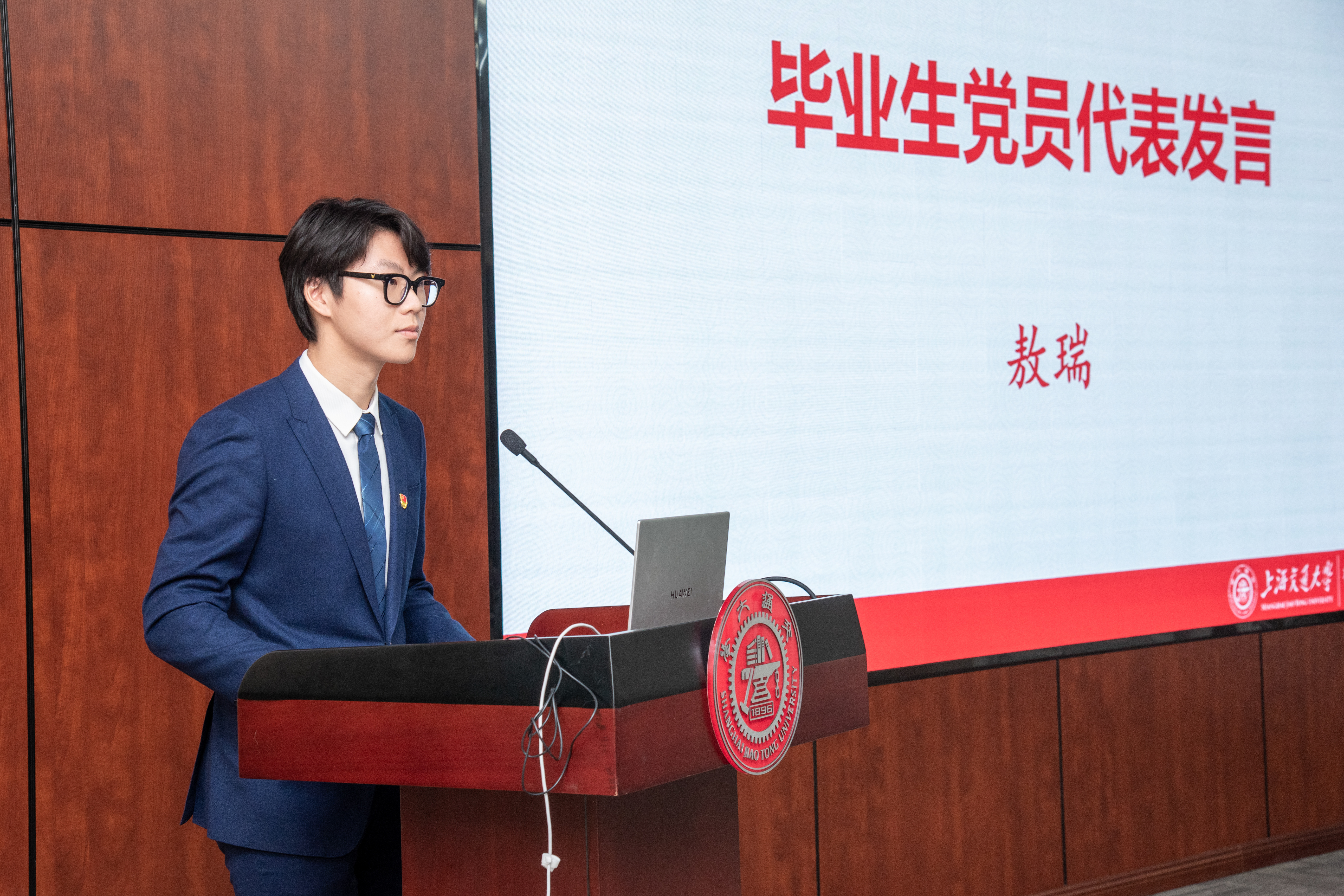 毕业生党员代表敖瑞结合自己在交大的求学和社会实践经历,分享了对未来职业选择的思考,呼吁大家勇于迎接挑战,始终保持交大青年的自信与朝气、坚韧与奋进,到祖国最需要的地方实现人生价值。