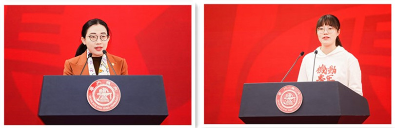 学院2004届本科毕业生、2009届博士毕业生、学院青年教师代表葛天舒作为青年教师代表发言,回顾了从学生到青年教师,参与和见证学院发展的心路感悟,寄语学子赓续荣光、与时偕行,以机动之名书写国家富强新篇章。学院2020级本科生、学生代表姜梦怡作为学生代表发言,认为导师的谆谆教诲和言传身教坚定了逐梦苍穹从事航天领域研究的决心,要以青春之我、奋斗之我、奉献之我为建设科技强国贡献力量。
