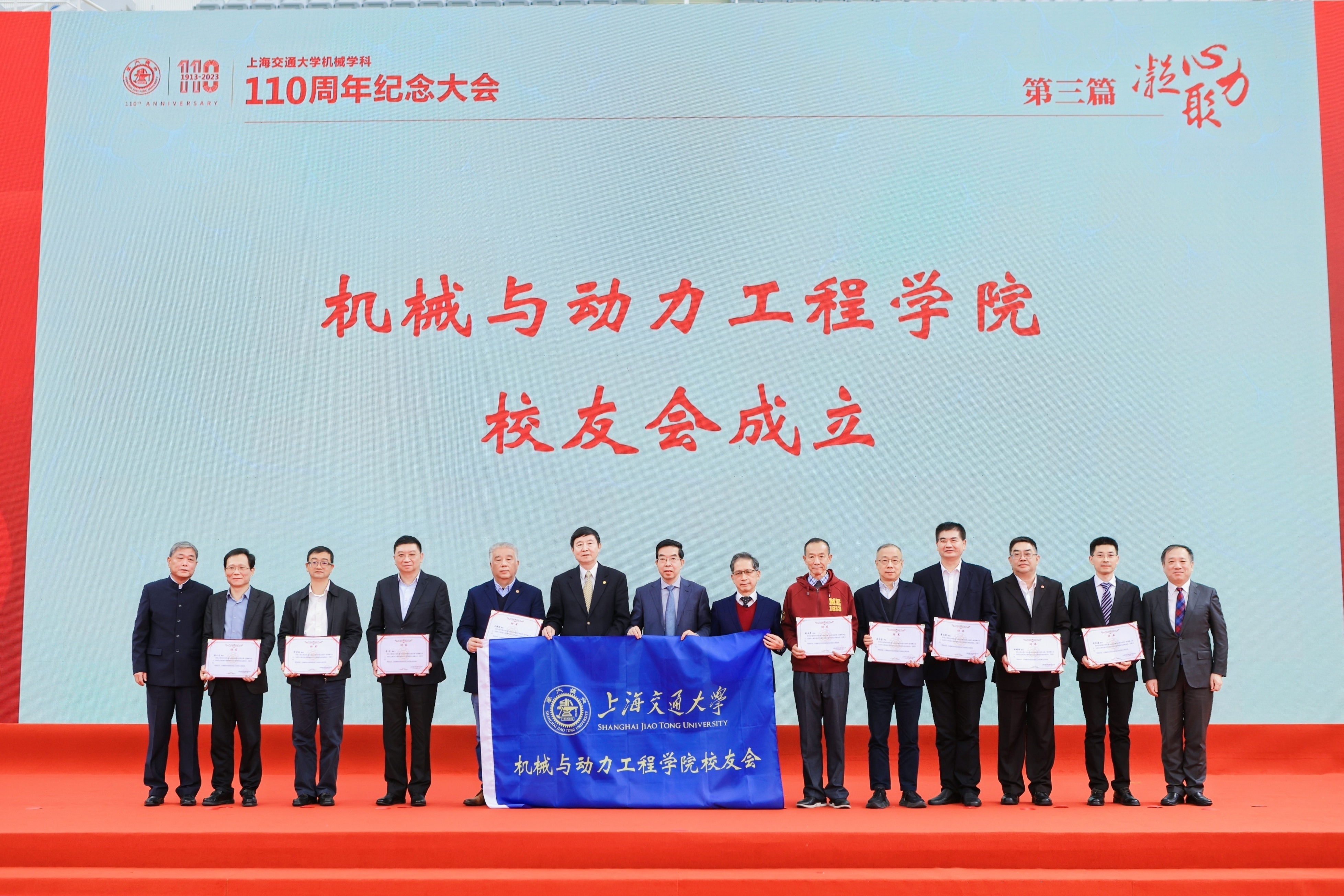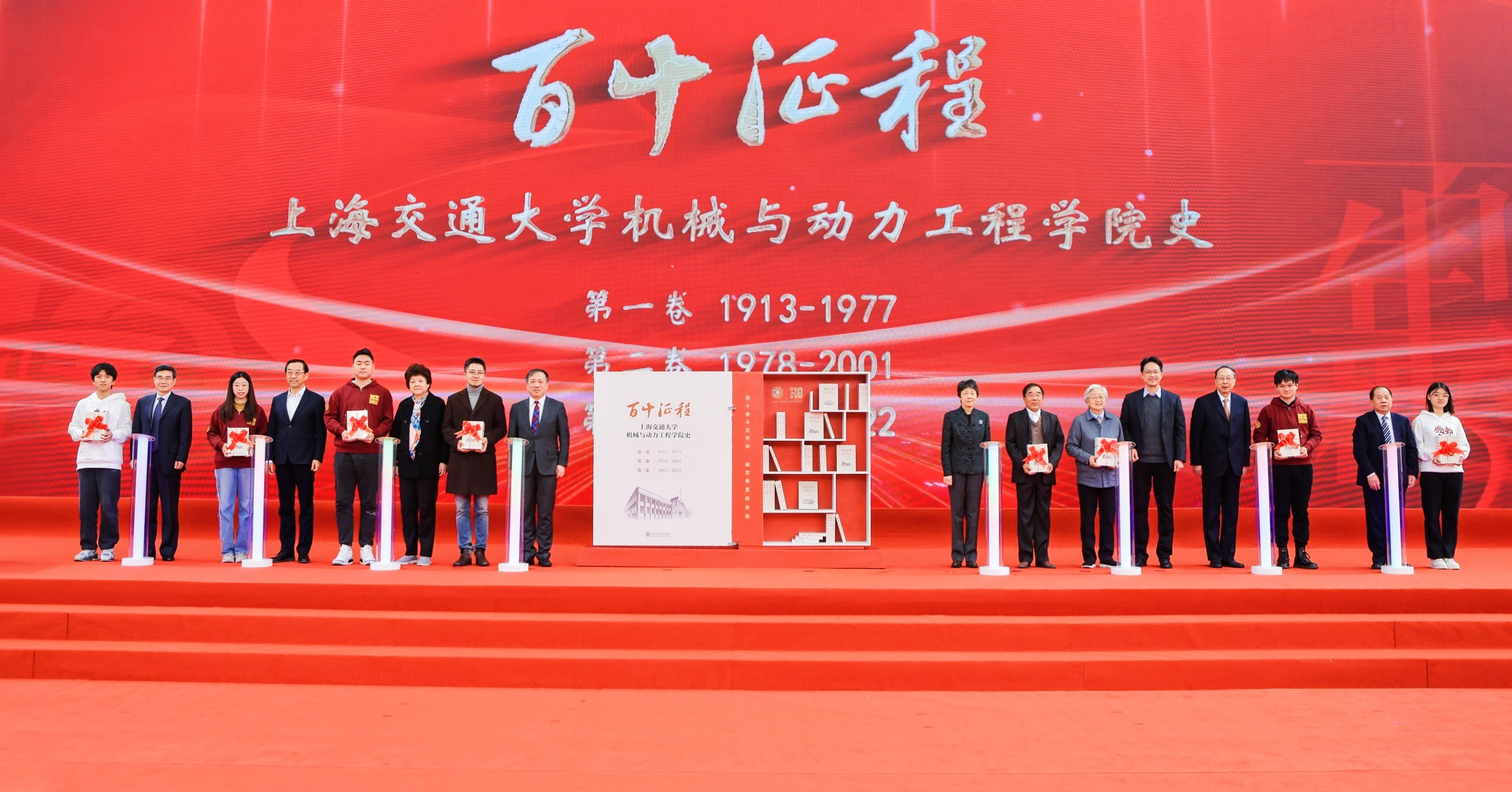 院庆大会上,学院隆重发布《百十征程—德赢vwin体育官网登录德赢vwin体育官网登录史》,为110周年献上文化厚礼。为全面回顾百十历程和办学成就,学院自2012年开始策划院史编纂工作,时任常务副院长奚立峰担任主编、副书记孟雁担任执行主编。编纂工作于2019年正式启动,在编纂组全体成员的共同努力下,编纂工作在2023年顺利完成并出版。院史专著共分三卷,约百万字,本着以史为鉴、资政育人的理念,收集大量档案史料,访谈师生校友,全面记录了机械和动力学科110年来在曲折中前行、在逆境中坚持、在改革中奋进的发展史,为关心支持学院发展的各界人士了解学院悠久历史和精神文化提供了一部生动翔实的院史专著。