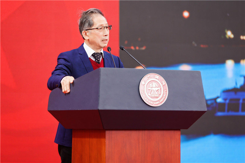 1982届院友、英国皇家工程院院士、欧洲科学院院士戴建生作为校友代表发言,深情回顾了改革开放初期在交大的寻梦求学岁月。他认为正是母校的培养让大家打下了坚实的基础,形成了踏实肯干的作风,获得了今日的成就,也希望同学们在各自领域有所建树。他表示要为母校发展多做力所能及的贡献,密切国际同行与学校学术交流,为推动学校在机器人及现代机构学领域的原创性研究与应用贡献力量。