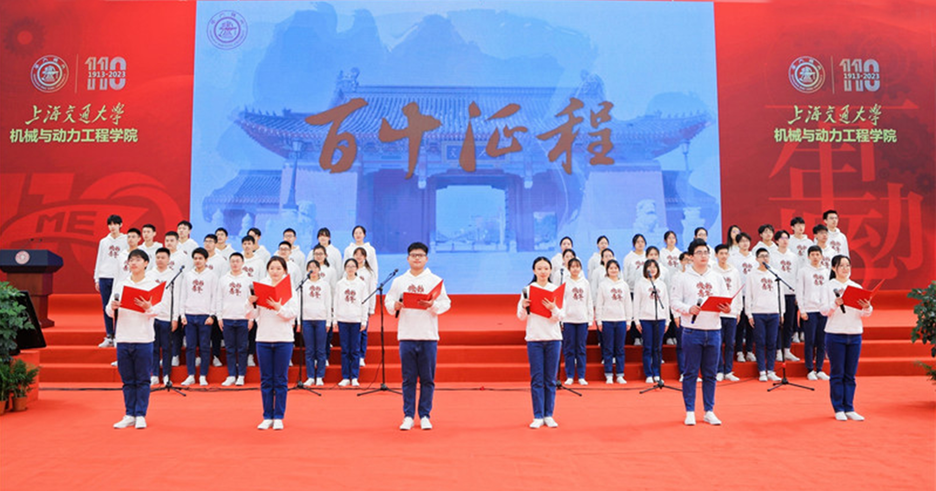 110年岁月如歌芳华流转,110年自强不息弦歌不辍,校友师生们以诗朗诵《百十征程》、合唱《夜空中最亮的星》、《同一首歌》、《歌唱祖国》献礼百十华诞,共同祝愿学院在新征程上再绘新篇。