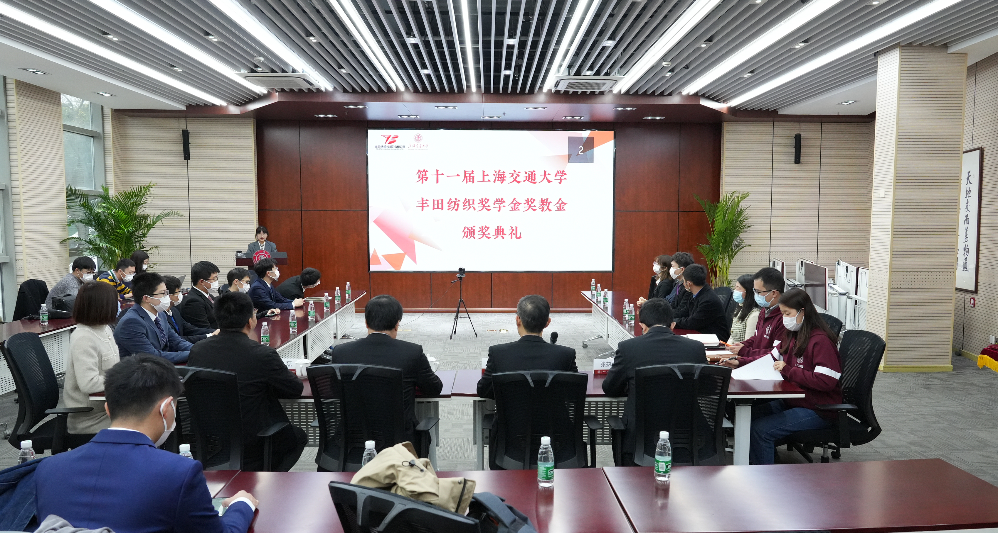 12月7日,2022年度第十一届德赢vwin体育官网登录丰田纺织奖学金奖教金颁奖典礼以线上线下相结合的方式举行。丰田纺织(中国)有限公司董事、常务副总经理庄志强,副总经理铃木康夫,人事总务部部长大仓吉贵,设计开发部部长王戬,人事总务部高级主管彭涛,政策法规·可持续发展战略室室长杨丽丽等企业嘉宾,德赢vwin体育官网登录党委常委、副校长奚立峰,德赢vwin体育官网登录党委书记林立涛、副院长朱磊、党委副书记张执南,以及获奖师生代表等参加了典礼。