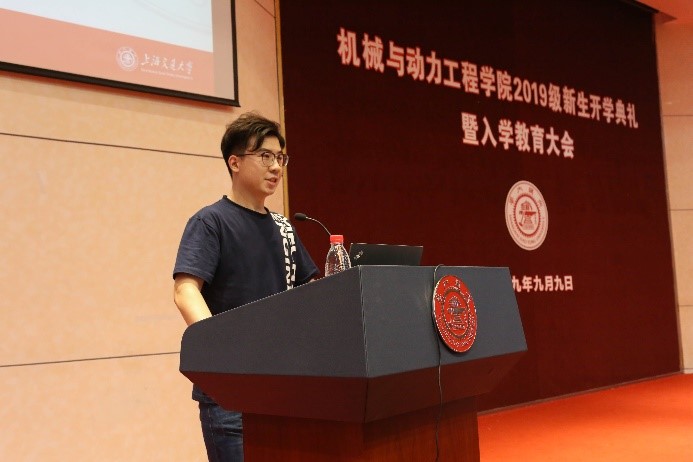 2019级硕博连读生张开淦代表全体新生发言。他表示,新生同学需要尽快适应身份的转变,有能力、有义务、有意识地多一份责任、多一份毅力。他号召同学们为强国兴邦铸就重器,为追寻真理孜孜不倦,为经世济民殚精竭虑。