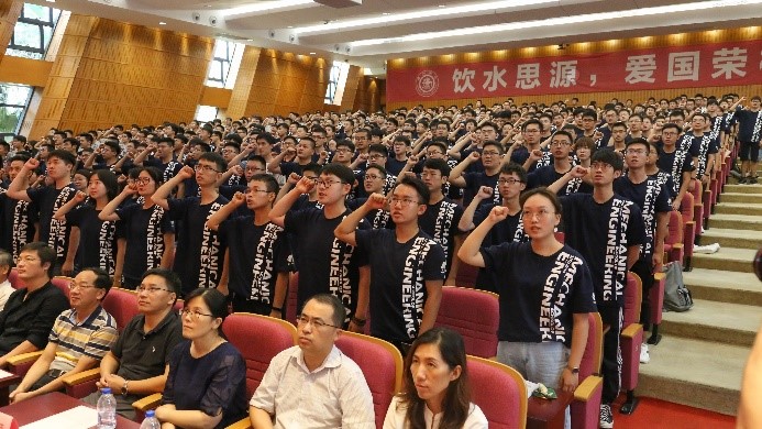 “我将谨记‘饮水思源、爱国荣校’之校训,诚信为本、精勤为学、脚踏实地、追求卓越,树立学术理想、坚守行业情怀,为制造强国实业兴邦而奋斗终身。”全体新生起立庄严宣誓,开启人生又一段旅程。