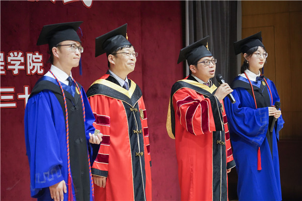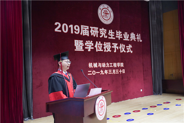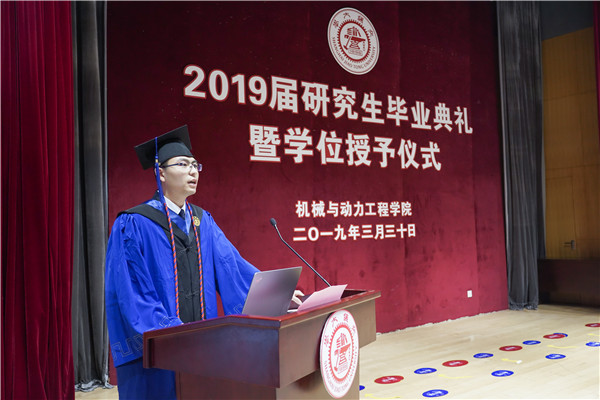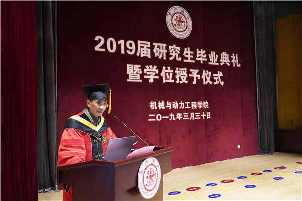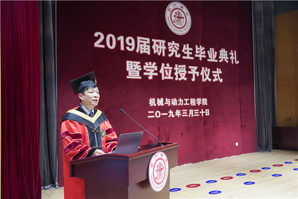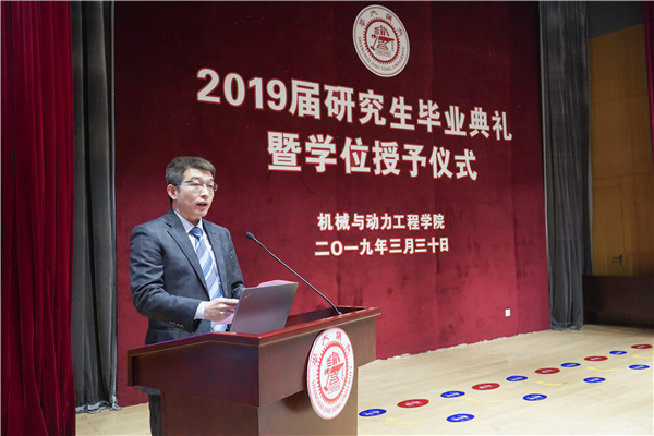春回大地,万象更新。3月30日下午,德赢vwin体育官网登录2019届研究生毕业典礼暨学位授予仪式在高田会堂举行。学院党委书记兼院长杜朝辉、常务副院长彭志科、副院长熊振华、导师代表、研究生思政教师、毕业生及亲友等200余人出席了典礼。典礼由学院党委副书记顾希垚主持。
