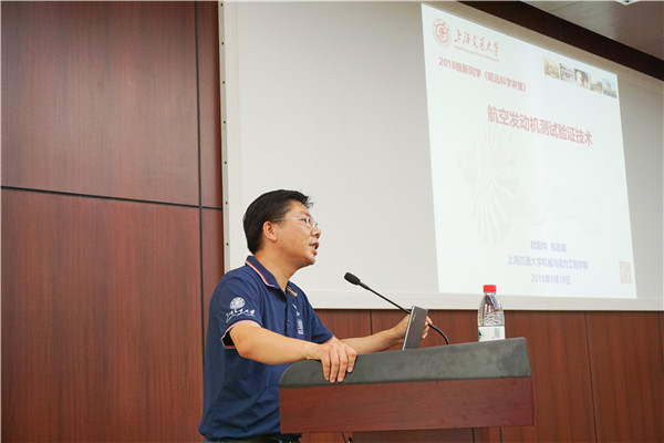 在振华会议室会场,航空发动机专家欧阳华通过航空发动机测试验证技术展开演讲。他首先表示了对新生的欢迎,并由同学们参加过的临港基地航空发动机参观活动开始,引入航空发动机的话题。他介绍了发动机的分类,航空推进技术的发展,航空工业的国民经济,国家工业,国土安全等方面的重要性,以及航空发动机的技术难点。之后他以大风扇为切入点讲解了航空技术难点。随后,欧阳华简要介绍了交大航空发动机研究院及临港研究基地,阐述了学院重视学生动手实践能力和人才培养的出发点,最后用肖志成学长的经历激励同学们投身科研并欢迎同学们加入机动大家庭。