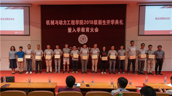 随后,王文章介绍了2018级各班的班主任。彭志科、王丽伟为班主任们颁发了聘书。