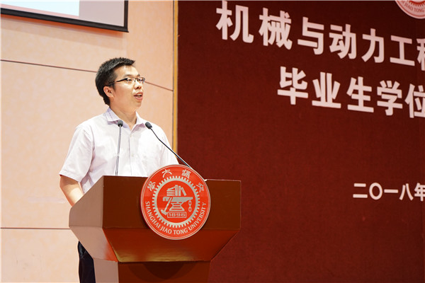 春风化雨,润物无声。2018届毕业生班主任代表、第二届钱学森班班主任彭志科回忆了与同学们相处的时光,朴实的言语中道出了珍贵的师生情谊。他围绕钱学森之问,鼓励同学们永葆交大初心,用“乘风破浪会有时,直挂云帆济沧海”的豪情壮志,传承钱学森学长之精神,发扬优秀校友之传统,传承机动百年之荣光,为祖国发展贡献力量,为中华民族再创辉煌。