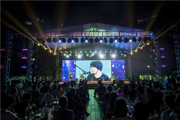由F14级女生带来的《仰望星空》用动人的旋律诉说着如星空般广阔的未来,紧接着的弹唱《彩虹》和《Wonderwall》则娓娓诉说出青春回忆,轻盈的旋律里流露出青葱岁月里的真挚情感。