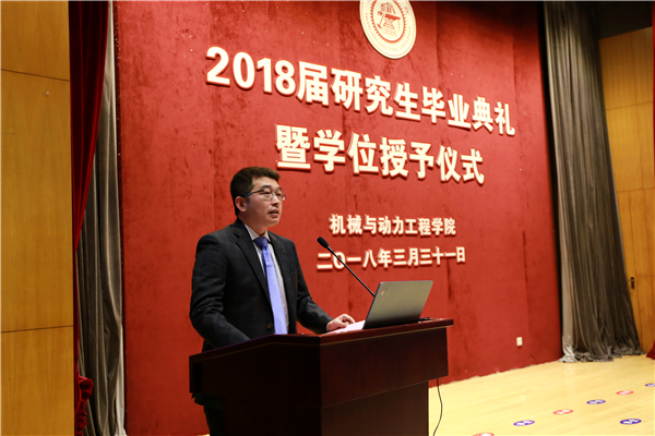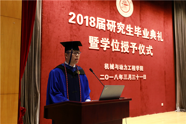 阳春三月,大地回春,百花盛开。在这生机盎然的交大校园里,德赢vwin体育官网登录2018届研究生毕业典礼暨学位授予仪式于3月31日下午在高田会堂隆重举行。学院党委书记兼院长杜朝辉,常务副院长彭志科,副院长熊振华,系所长陈明、曹其新、蒋伟康、赵长颖、潘尔顺、顾汉洋及导师代表,研究生思政教师,毕业生及亲友等200余人出席典礼。典礼由党委副书记顾希垚主持。