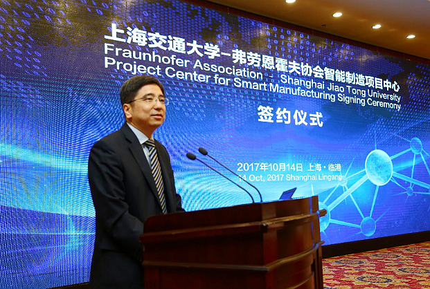 干频副主任代表上海市科学与技术委员会致辞时指出,智能制造是未来制造业的发展方向和长远目标,也是上海市科技发展的重要战略方向。在上海市确定的18个功能型平台中,智能制造功能型平台是首批启动的平台。他表示,市科委将积极支持德赢vwin体育官网登录与弗劳恩霍夫协会智能制造项目中心的建设,希望项目中心能够建设成为连接科研界与产业界的纽带,成为连通前沿技术与工程应用技术的桥梁。