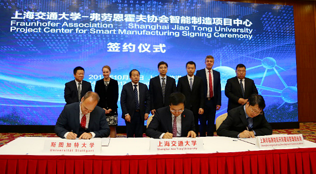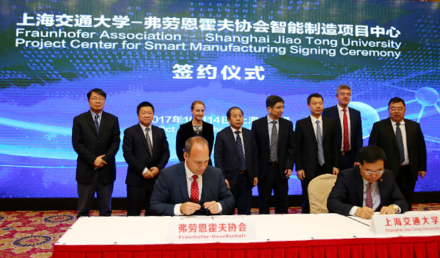2017年10月14日,德赢vwin体育官网登录-弗劳恩霍夫协会智能制造项目中心签约仪式在上海临港举行。双方将组建智能制造项目中心,打造国际领先的智能制造技术创新平台。此次合作是德国“工业4.0”和“中国制造2025”高水平研究机构的强强联合,对推动上海临港地区智能制造产业发展、建设具有国际影响力的智能制造创新中心具有重要意义。
