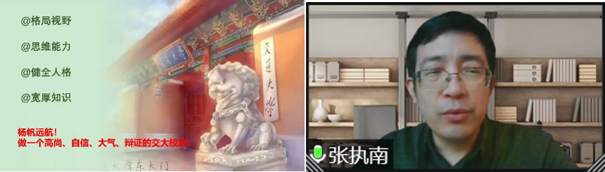 张执南分享了抗疫以来的感悟,希望学子们在疫情期间保持乐观的心态,学会系统和辩证地看待问题,保持自律,充分利用好时间,在“危机”中寻找“契机”,努力提升自己,成为高尚、自信、大气、辩证的交大人。